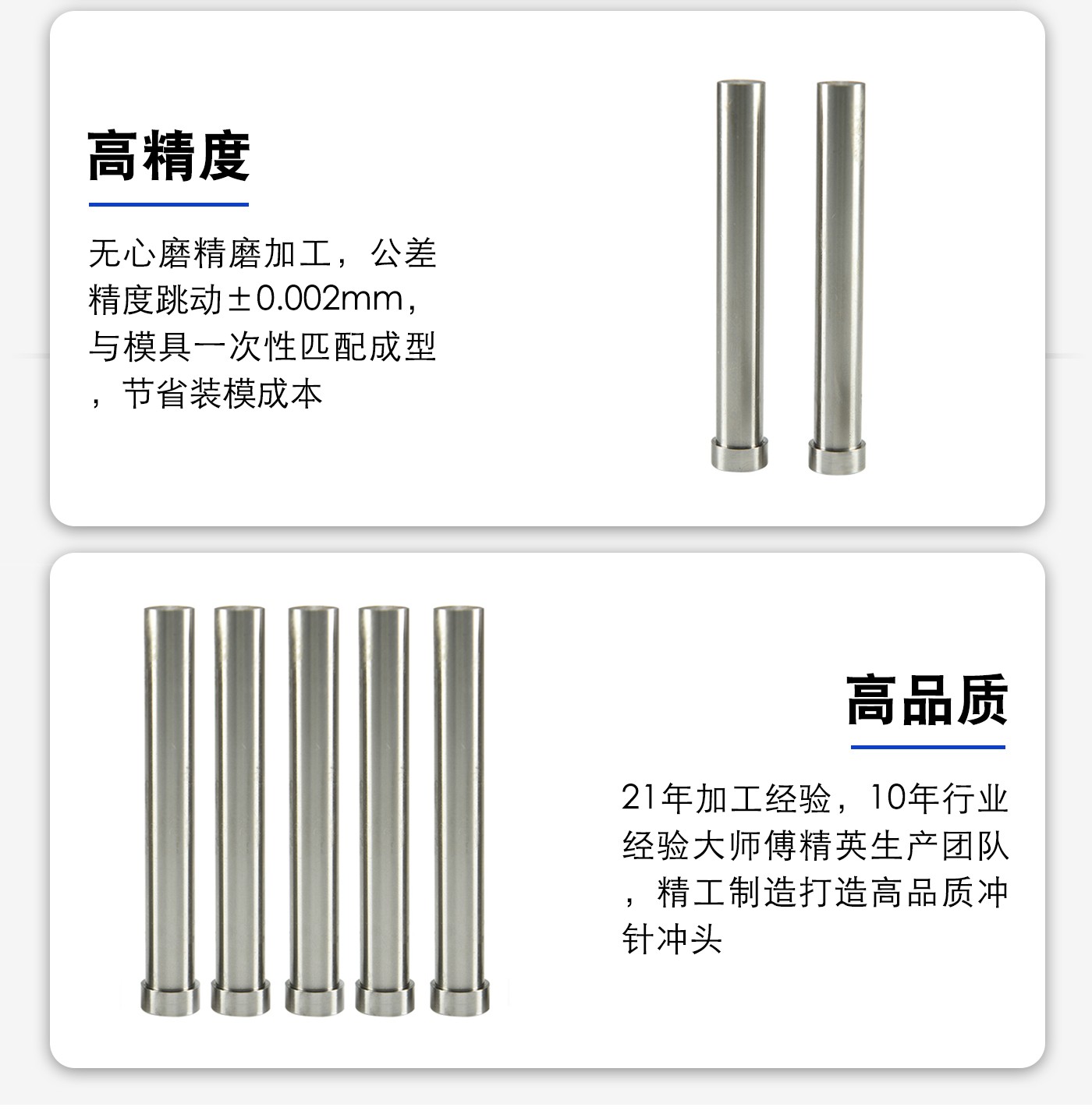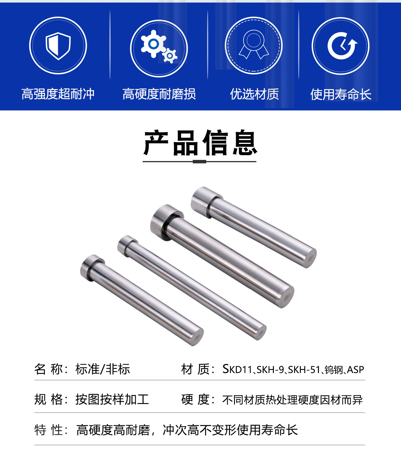 恒通興科技專業加工T型沖針,A型沖針等沖針沖頭模具配件,T型沖針標準件規格型號齊全,10萬現貨庫存,非標件規格可來圖/來樣/來規格定制。